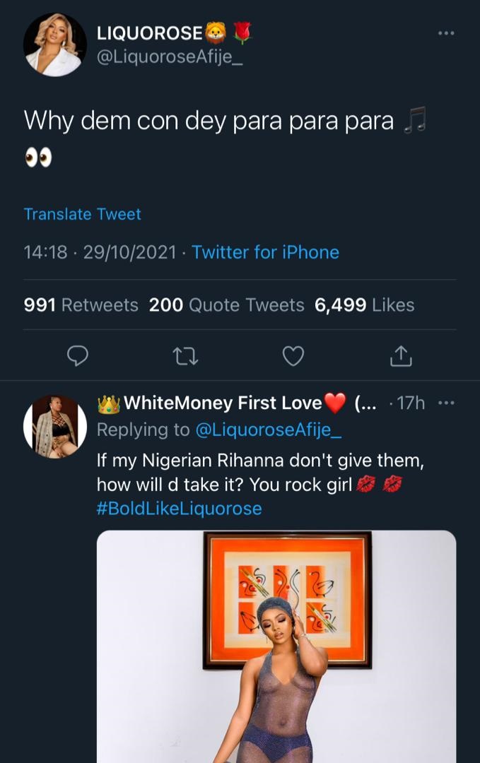 Big Brother Naija star, Liquorose has reacted to the heavy criticism she received on social media over the see-through outfit she rocked to an event recently.
