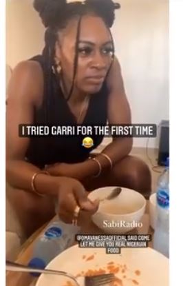 “I tried Garri for the first time.. @omavanessaofficial said come let me give you real Nigerian food”.