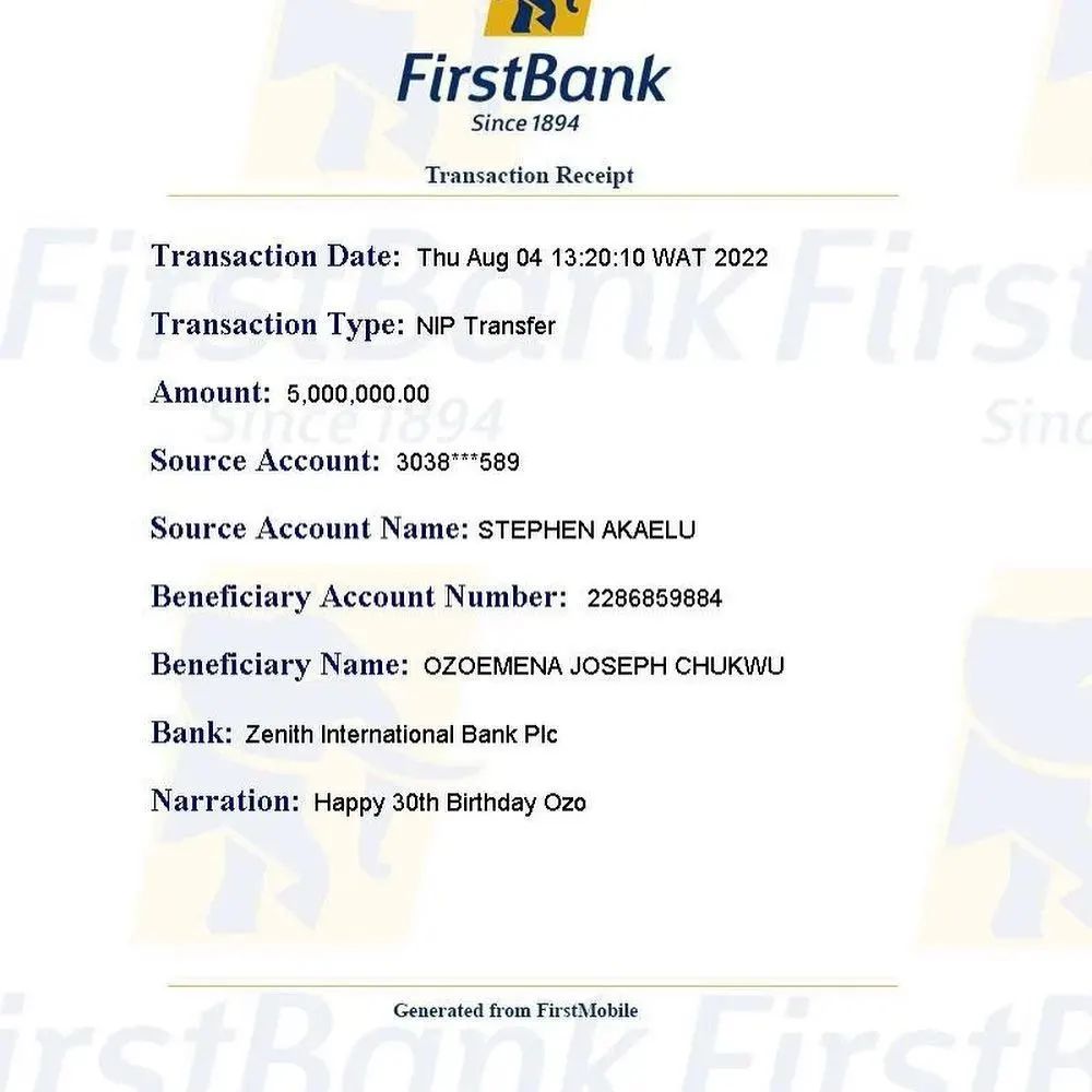 They gifted him a whooping sum of N5 million and shared the receipt of payment as proof that he indeed received the money.