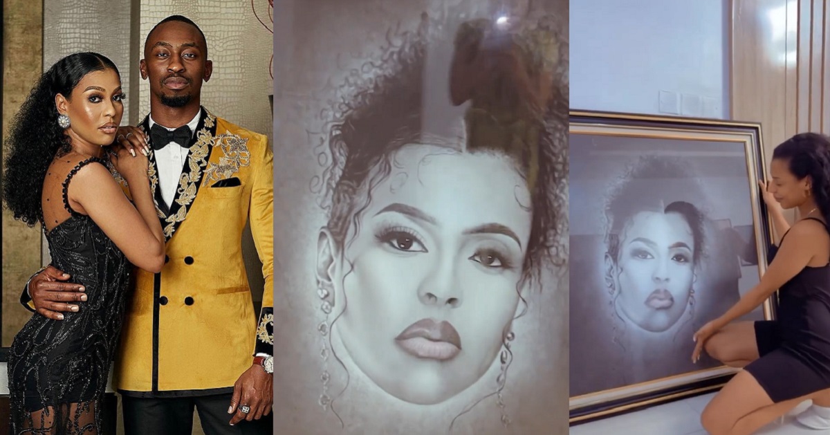 Big Brother Naija star, Saga Adeolu has gotten ladies swooning on social media after he gifted his co-star and love interest, Nini Singh, a beautiful pencil drawing of her face.