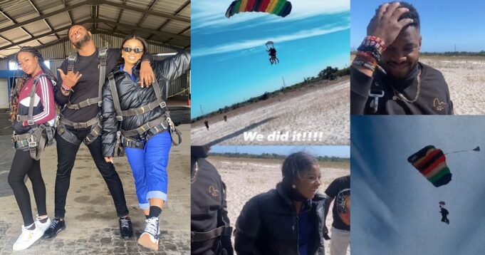 Big Brother Naija stars, Liquorose, Cross and Kim Oprah, took on a daredevil challenge today, November 4, as they went sky diving in South Africa.