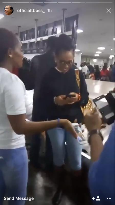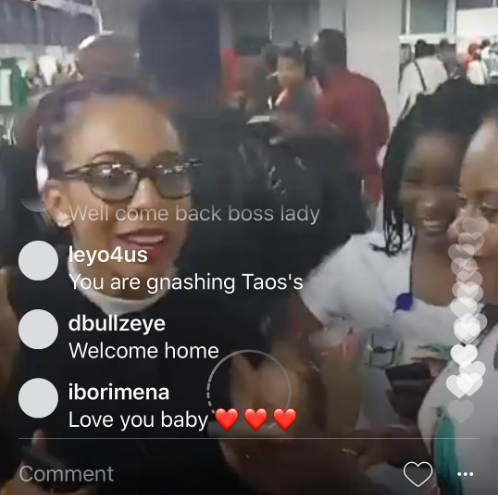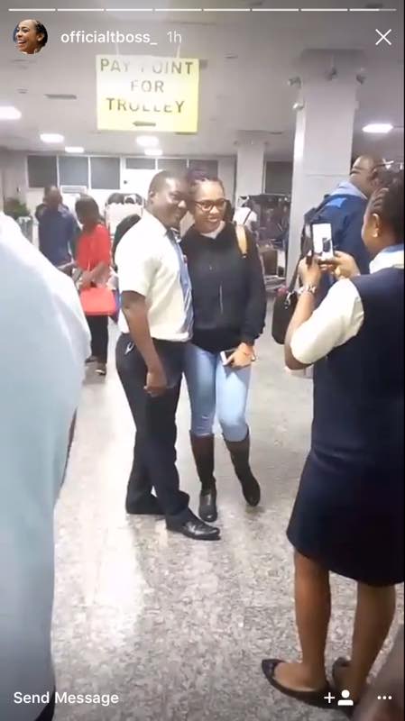 Here are photos of Queen TBoss’ arrival at the Murtala Muhammed Airport, Ikeja.