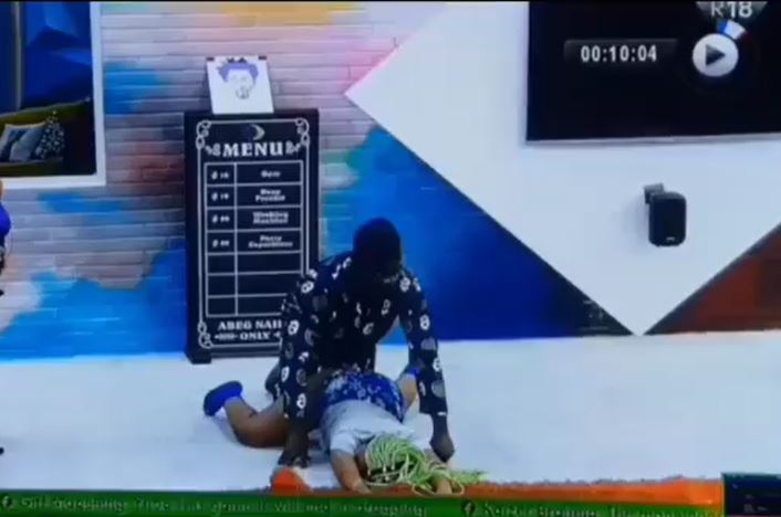 The female housemates were meant to lay on the floor while the male housemates take turns in displaying how they would thrust in and out when engaging in sexual intercourse.