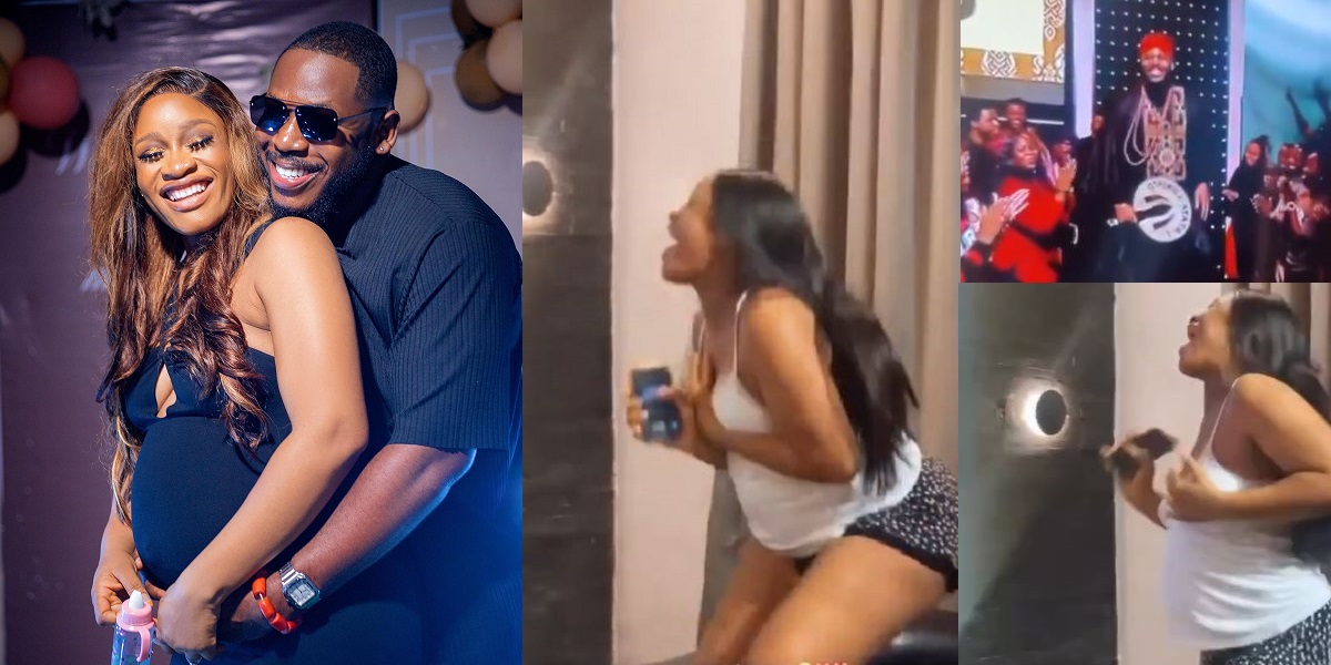 In the video, a heavily pregnant Chioma is seen jumping and shouting for joy as she watches her man mount the stage after the show host, Ebuka, announces his name.