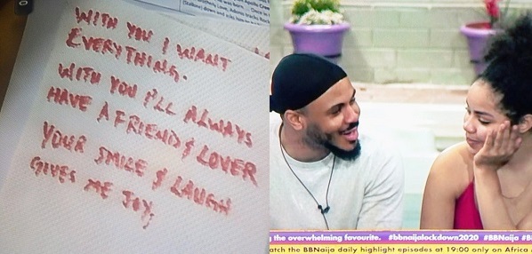 Big brother Naija housemate, Ozo has yet again resumed his pursuit of Nengi’s love as he wrote a lovely letter to her on a toilet paper