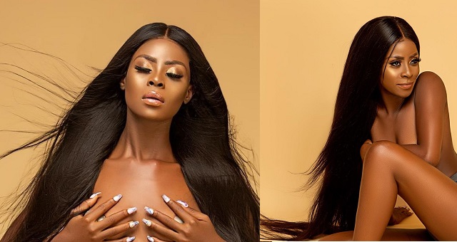 Reality Star, Abiri Oluwabusayomi popularly known as Khloe has gone topless to announce her new endorsement deal as Lishashair ambassador.