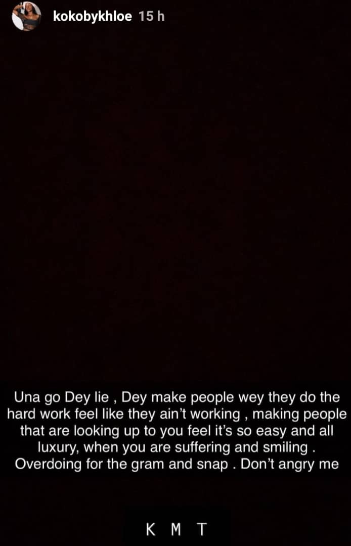 Big Brother Naija Product, Khloe, is taking shots at her fellow celebrities who sign ”peanut” endorsement deals and come online to disturb people.