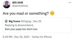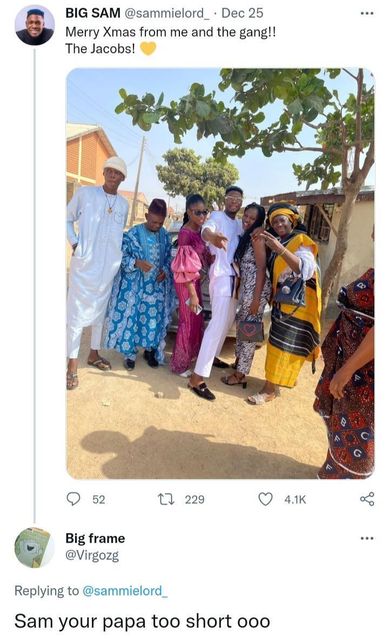 However, the follower deemed it fit to point out that Sammie’s dad is short.