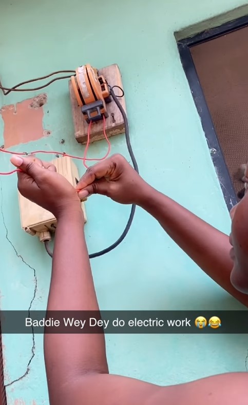 The video circulating online showed her friend using her mouth to cut off a lifeless wire and then connecting it to another wire connected to a cable changeover.