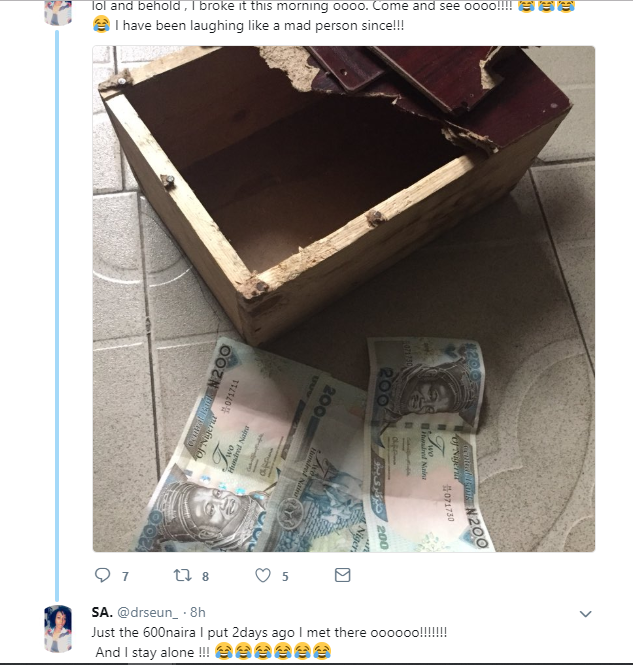 According to her, she was expecting to see at least N20-N30k, but after breaking her piggybank she found only N600.