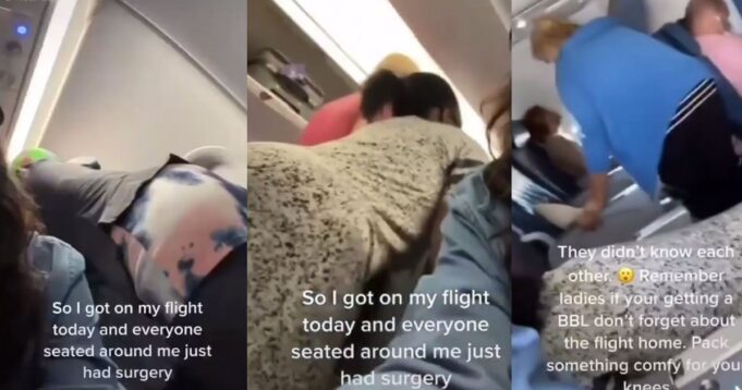 A viral video of women kneeling on their seats during a flight because they just had butt-lift surgeries has stirred reactions online.
