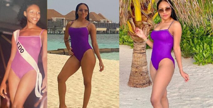 Anita who turned a new age on Friday, March 19, recreated her bikini look of when she won Most Beautiful Girl in Nigeria (MBGN) in 2004.