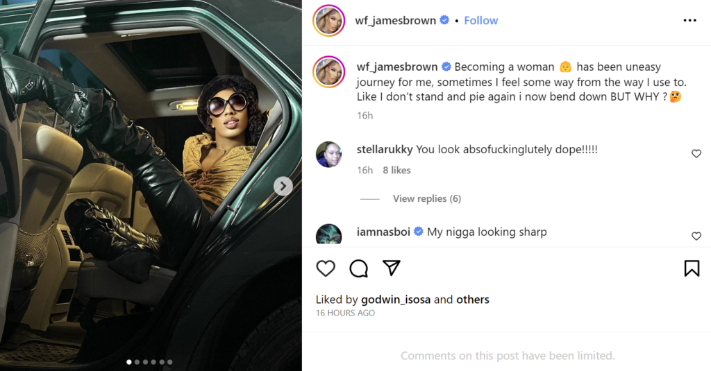 Taking to his Instagram page, James revealed that becoming a woman has not been easy for him because he sometimes feels different from how he used to feel.