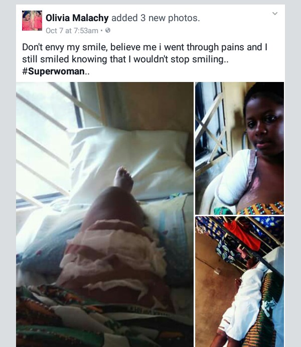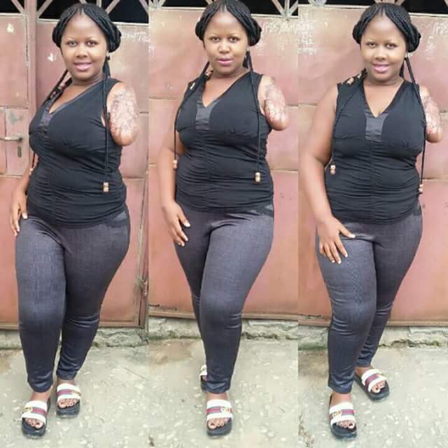 A lovely Facebook user, has shared her quite sad story of how she lost her left arm after she was involved in an accident but her mischief didn’t bring her down!