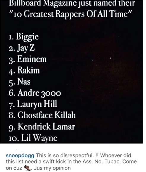 Wondering who compiled the list, fans have come for the music company saying it’s a whack list. Even rapper, Snoop Dogg who doesn’t play around when it comes to stuffs like these said the person who compiled the list needs to be kicked in the a*s, as it’s disrespectful.