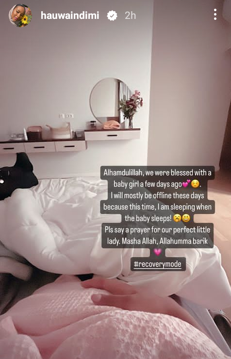 Hauwa announced the arrival of their bundle of joy in a post shared via her Instagram story on Saturday night, May 13.