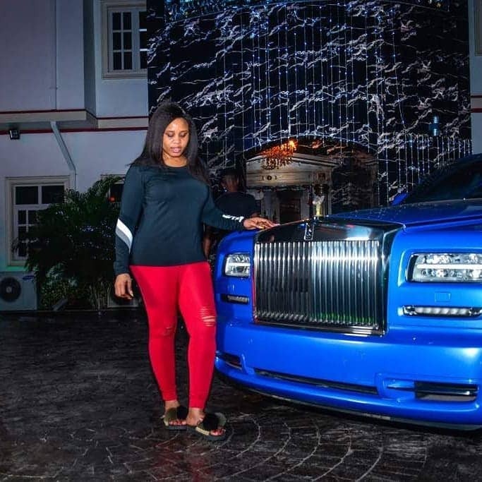 ”Oh my God! Christmas came early. I’m still speechless. Came back home for Christmas ,only to see a new baby Thank you my love , you see why l love you. You are so full of surprises and always ready to gift me with precious things …. You will forever be my Super man, l can never trade you for anything .. My Chocolate cake with caramel topping . I Love You baby @iam_emoney1 #rollsroycephantom”.