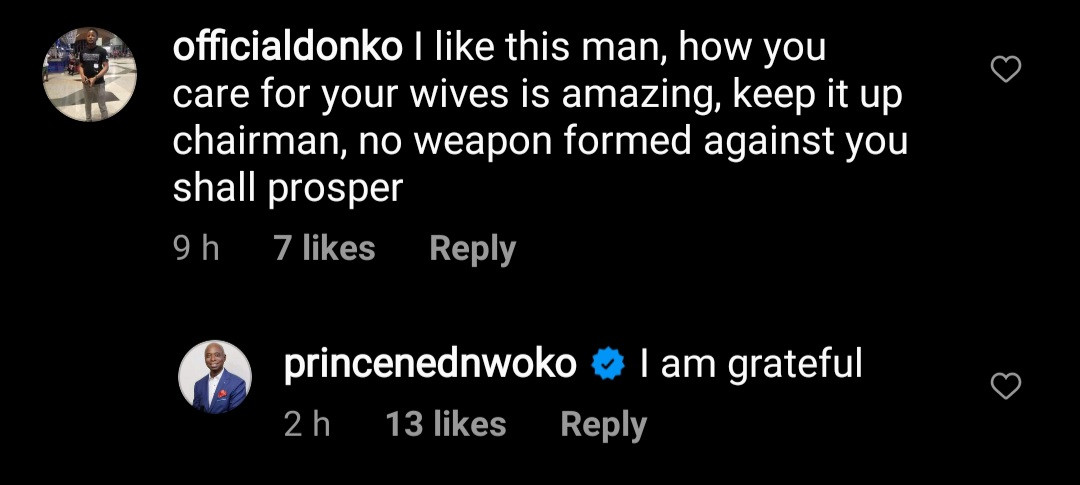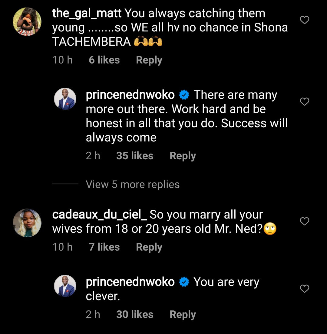 Oddly, Ned Nwoko dedicated time to respond to some of the comments. A follower pointed out the fact that he marries his wives between 18 and 20 and he responded, “You are very clever.”