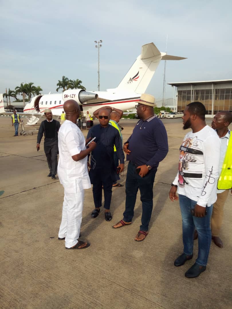 The Billionaire Politician arrived Asaba a few minutes ago and was welcomed in a loud celebration from youth groups, women associations, political associates, friends, reputable personalities across divers sectors in Delta state and members of the constituency which he represents.