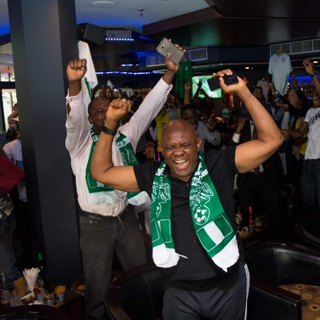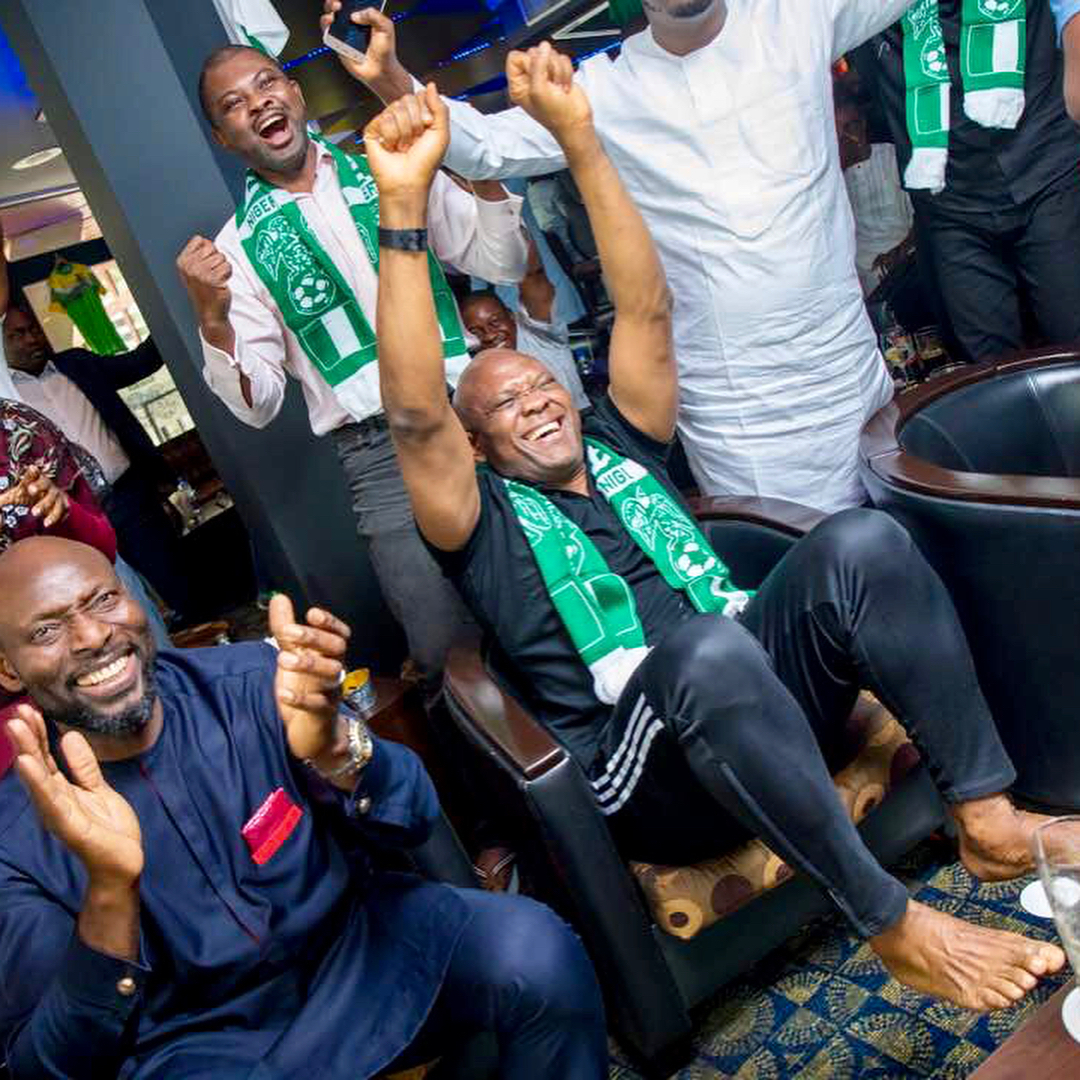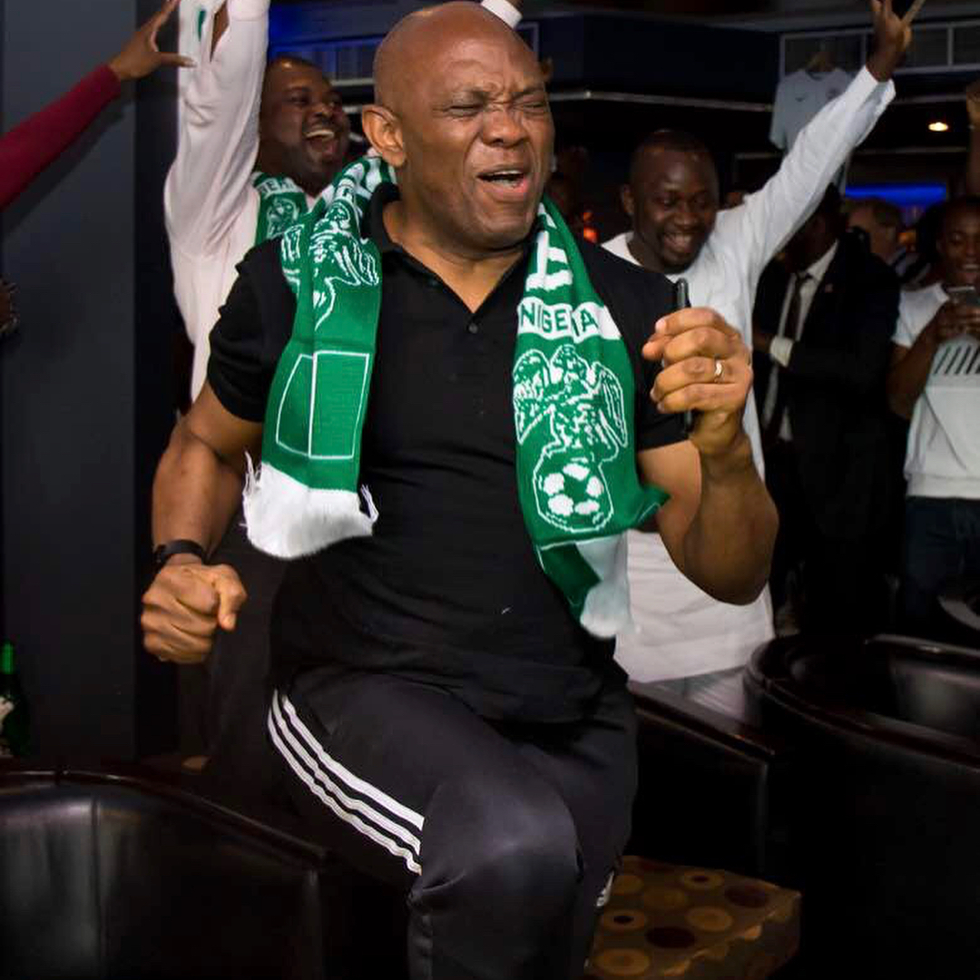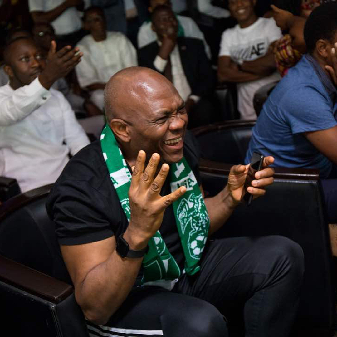 Not left out in this celebration was billionaire businessman, Tony Elumelu who took to his Instagram page to share photos of himself in a joyous mood while watching the match.