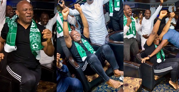 Nigerian billionaire businessman, Tony Elumelu, has been spotted celebrating, over the victory of the Super Eagles against Iceland in Russia.
