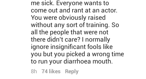 The disparaging comments obviously upset Akintola because she slammed one of the trolls without mincing words, and she also blocked the oversabi Instagrammer from her page.