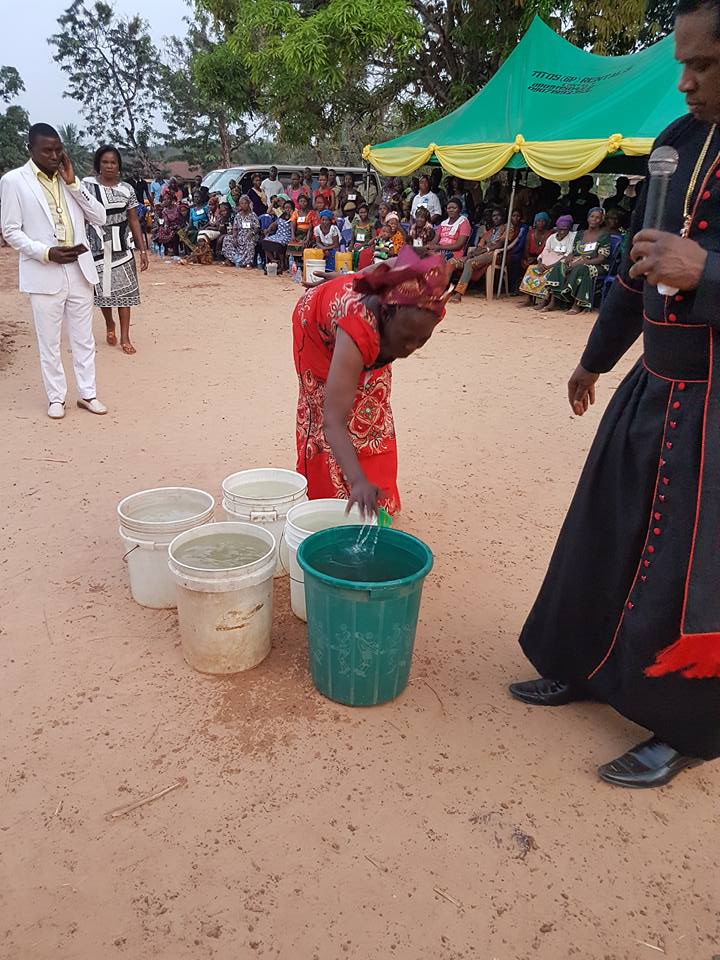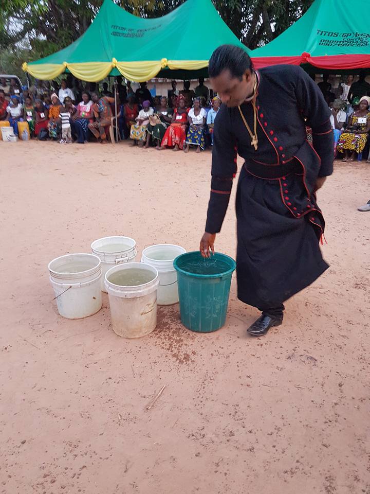 Apparently this happened in onica local government area, Ebonyi state on Sunday. Bishop Dr Sam Zuga turned COLD water to HOT water in front a crowd of “believers”.