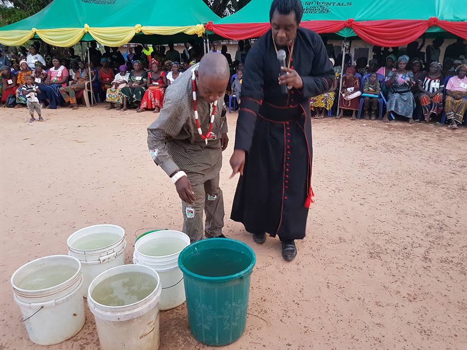 The Igwe of the community and other people from the crowd “tasted” the water to confirm it was hot.
