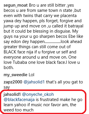 Of course, the shade to Tuface is clear.. Recall Blackface had once said TuFace really betrayed him.. So with this, he is painting Tuface as Judas Iscariot. Blackface had issues with Tuface since he left the plantation boyz group, so people think he’s indirectly saying Tuface is Judas Iscariot who betrayed his own people then left the group.