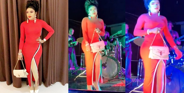 In a video shared on his page, the effeminate is seen dressed in a bright tomato-red gown – he was on stage dancing as he was serenaded by a band belting out the tunes of ‘Lady in Red‘.