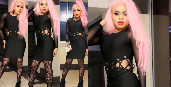 Nigerian male babrie, Bobrisky yesterday, stepped out with his blazing pink hair and a tight, revealing black dress.