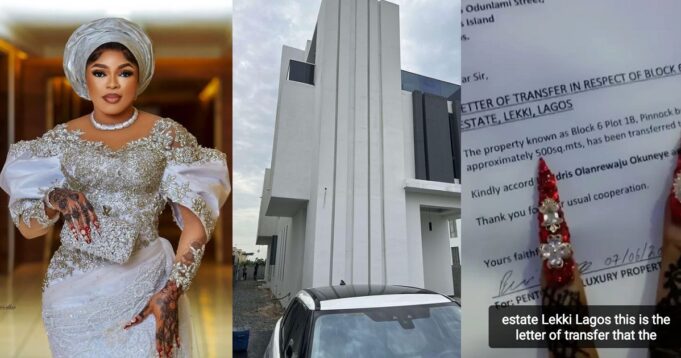 Popular crossdresser, Okuneye Idris, better known as Bobrisky, has shown off the transfer deed of his 400 million naira mansion to dispel rumours about its ownership.