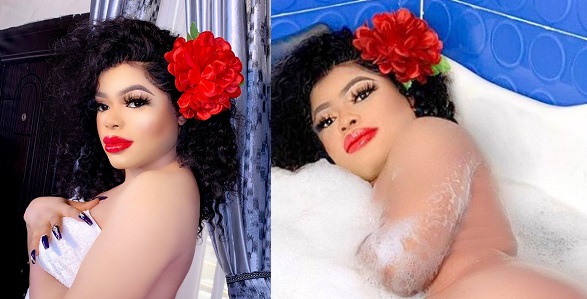 Self-acclaimed Nigerian male Barbie, Bobrisky has taken to social media to share a naked photo of himself as he soaks inside a bathtub.