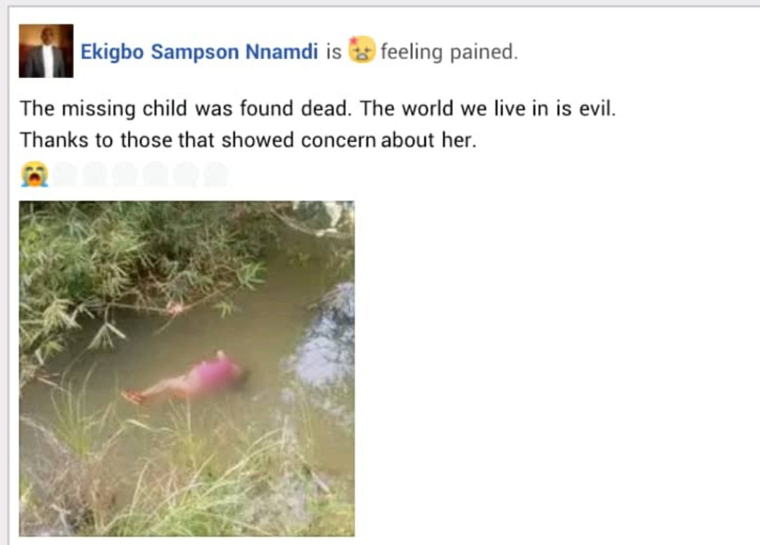 “The missing child was found dead. The world we live in is evil. Thanks to those who showed concern.” he wrote.