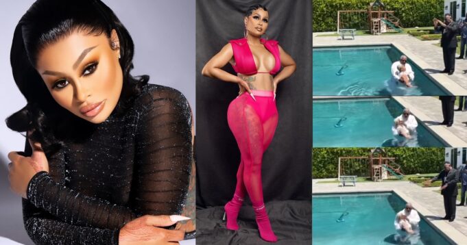 The video shows the socialite being submerged and she wrote in the caption – “Born again on my Birthday [praying hands emoji] 5/11/22 #newbeginnings”