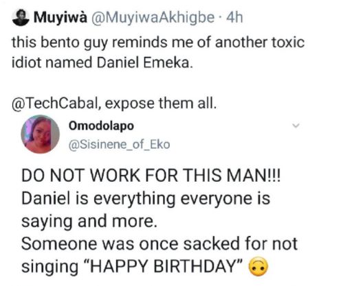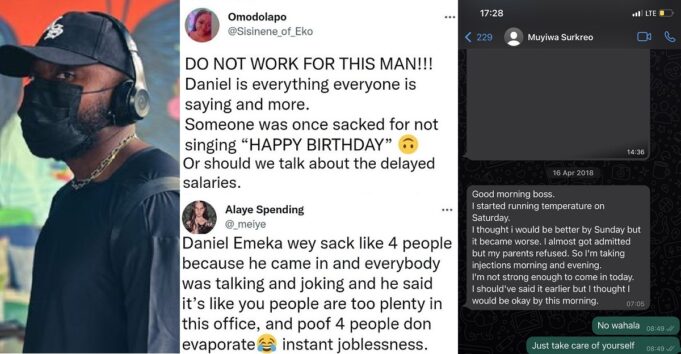 A particular employer, identified as Daniel Emeka, was called out by different people and accused of firing his employees at the slightest provocation.