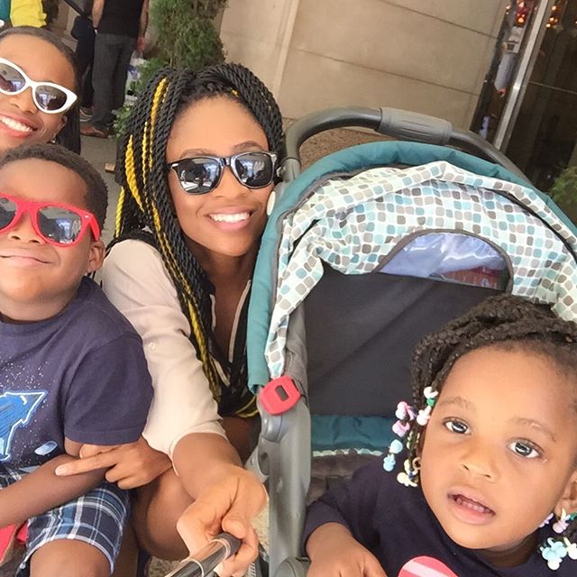 Wife of popular comedian, Bovi Ugboma, Kris Asimonye Ugboma, is currently on Vacation in the United States with their two children, David and Elena Ugboma.