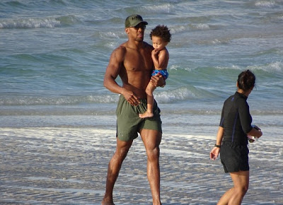 The Heavyweight Boxing champion and his ‘secret’ son, Joseph and his girlfriend were recently spotted on the beach in Dubai where they are currently having their vacation.