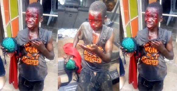 A boy who decided to tow the path of trending underwear theft, got more than he bargained for as he was left bloodied by angry residents of Osun state.