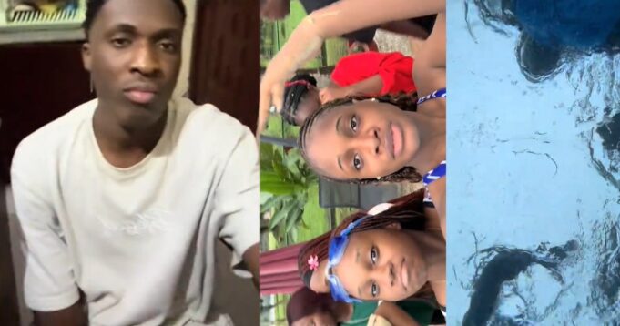 At the end of the video, the friend who was recording before the phone slipped was captured in the pool, reaching desperately for the phone.
