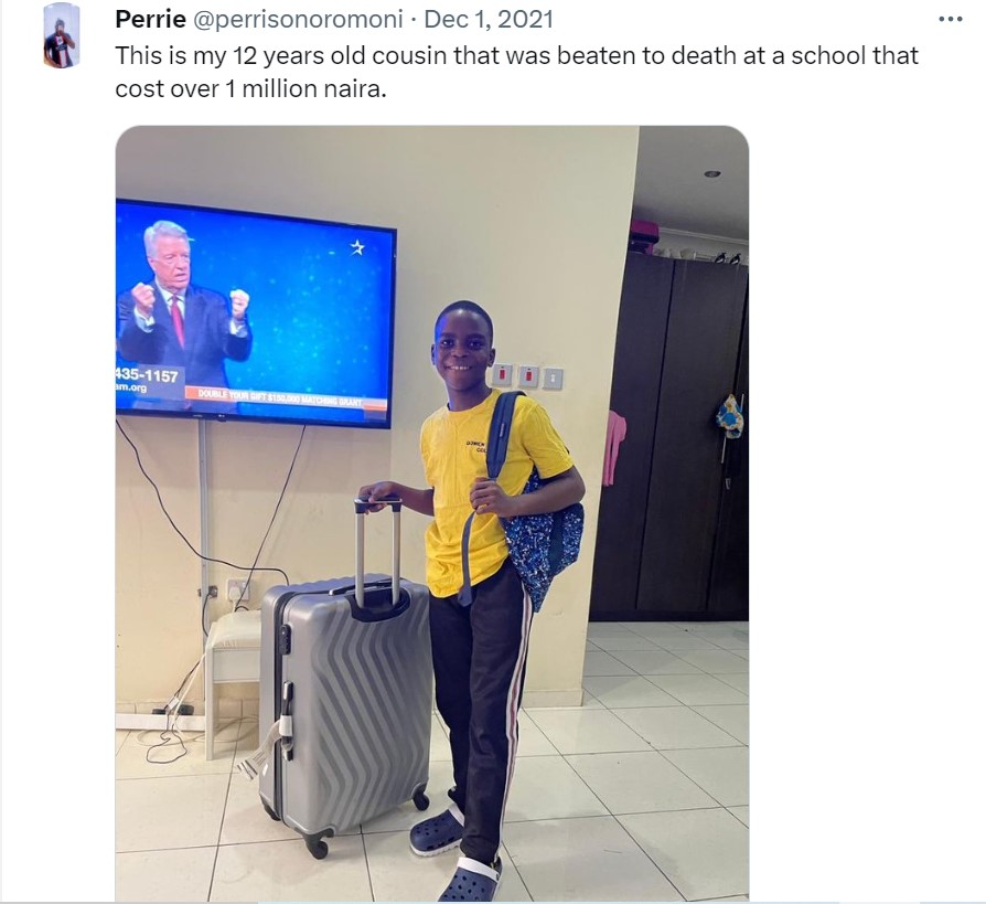 An uncle to late Sylvester, @perrieonoromoni who passed away due to alleged bullying from senior student in his school, Dowen college, Lagos.