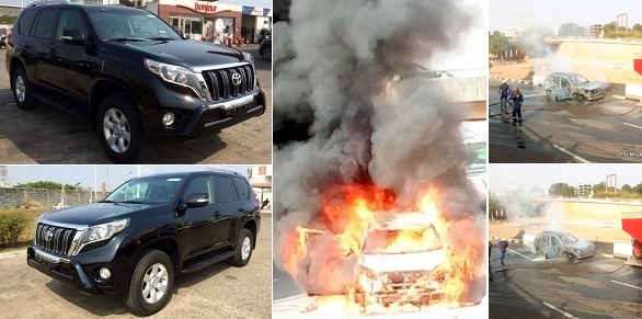 A brand new Prado Sport Utility Vehicle has been engulfed by fire on the road in the federal capital, Abuja – it caught fire along the federal highway at a location adjacent to the Federal Secretariat in Abuja at about 8.30 a.m. on Monday.