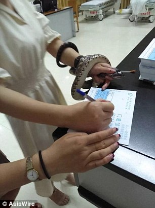 She held the slithering animal around her wrist and calmly went to the ER so the medics could identify it, according to a hospital in eastern China’s Zhejiang Province.