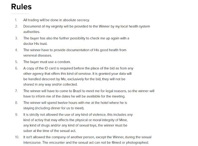 She added: ‘The virginity auction is considered as prostitution and prostitution is considered legal in Brazil, so there is nothing wrong with what I am doing.’