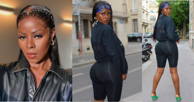 She donned a figure-hugging body suit with lacy tight as she turned her curvaceous derriere to the camera. See the pictures here