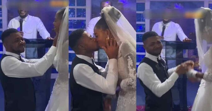 A wedding guest, @giftluxurperfumes, shared a video of the newlyweds at the church altar trying to kiss after being pronounced husband and wife.