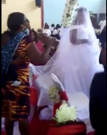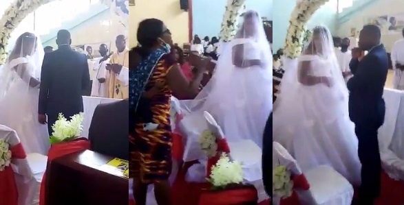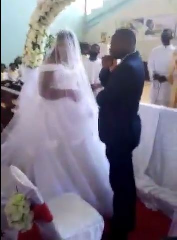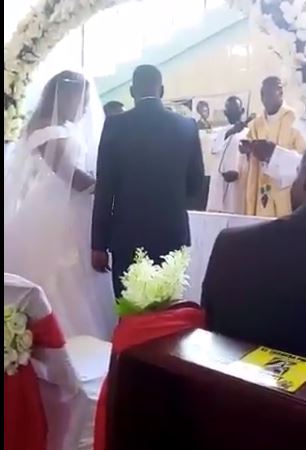In the now viral video the woman who was seen backing a small baby, insisted that the priest should hold on with joining of the couple has she claimed the husband is hers.