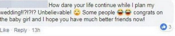 Below is a screenshot of the message she got from the self-centred bride after she welcomed her baby.