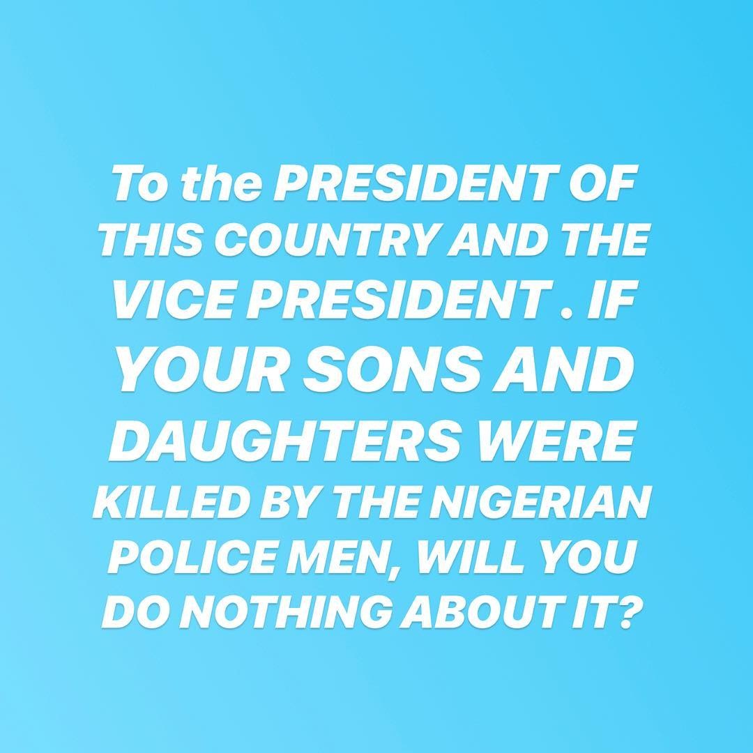 EVEN THOUGH MY parents don’t want me to do this, To be honest….it is Painful that this keeps happening and nothing is done to these officers…..LIVES OF PEOPLE MEANS NOTHING TO YOU cos they ain’t your kids?……if na even the President, no Wahala but VICE PRESIDENT SIR, you are a good Christian and a Pastor at least that title “Pastor” was used during this last election, I saw the billboards . Our LIVES MATTER. it can be your Turn Tomorrow!!!!!. It can be your turn tomorrow. We are not animals…..It’s getting worse everyday and it’s unbearable….IT CAN BE YOUR TURN TOMORROW. Even the so called POLICE ambassadors are doing great job than the PRESIDENT AND THE VICE PRESIDENT….do the right thing cos it can be your turn tomorrow.? @muhammadubuhari @profosinbajo