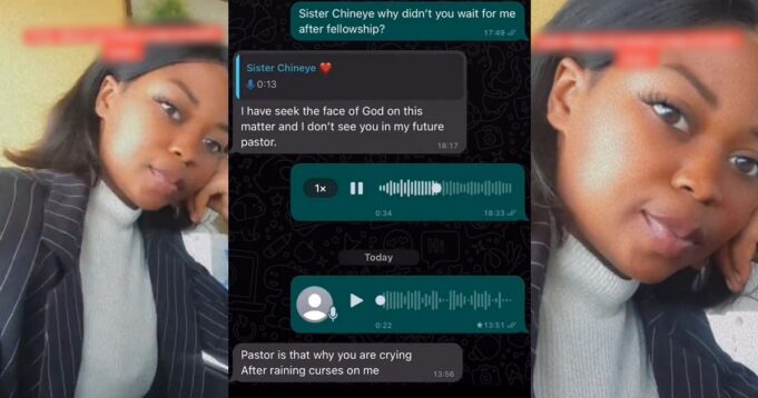 A few seconds after the pastor was done raging and cursing her out, he started pleading and crying that she reconsider their relationship.